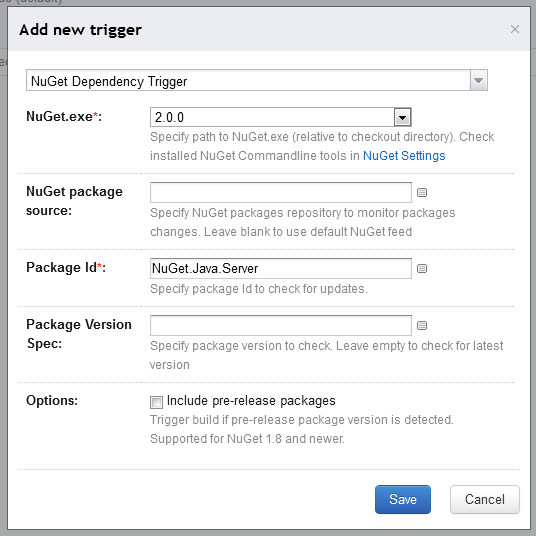 Do you use Prerelease packages? This is nice that it is now possible to mark package as beta or so. NuGet simple treats a package prerelease if the version looks-like 1.2.3-some_word (still 1.2.3 is called not prerelease). Now it is possible to specify if you like to include or to ignore new prerelease packages in the trigger.